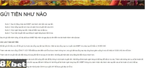 Dưới áp lực thời gian, bước nào không cần là bước cản trở. Hãy ghim kênh nạp ưa thích, chuẩn hóa cú chạm và rút ngắn mọi quãng di chuyển trên giao diện. Khi chuỗi thao tác đã thành nếp, Nạp tiền 8KBET sẽ chạy trơn như một phản xạ.